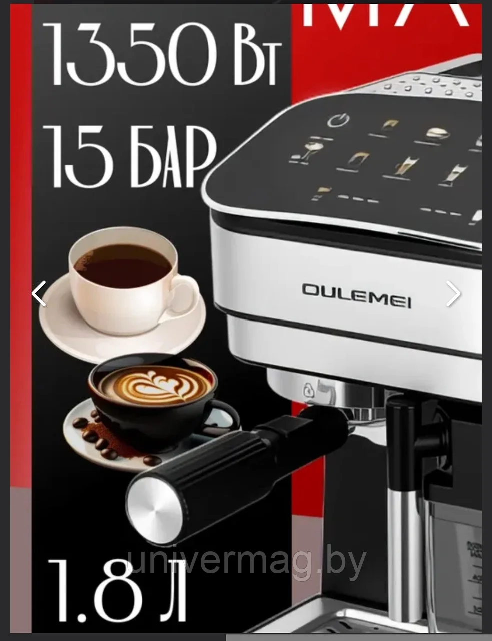 Кофемашина автоматическая OLM-KFB013, с капучинатором, 1350Вт, 15 бар, серебристая-черная